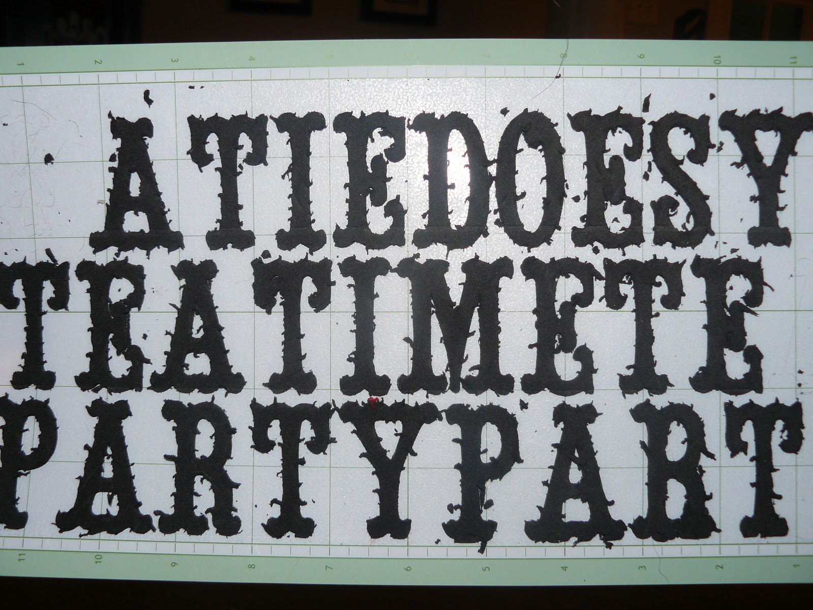 End result. Not terrible, but not usable really. Unless I want to go for something that kind of looks like it was carved out of wood. All those little pieces are on the letters, not on the mat. There's less cleanup witht he foam, but it still left a good mess and I wished I had used an already messy mat since it was adhesive backed. So I wouldn't really recommend this. Just roll with the normal craft foam (plus, WAY cheaper).