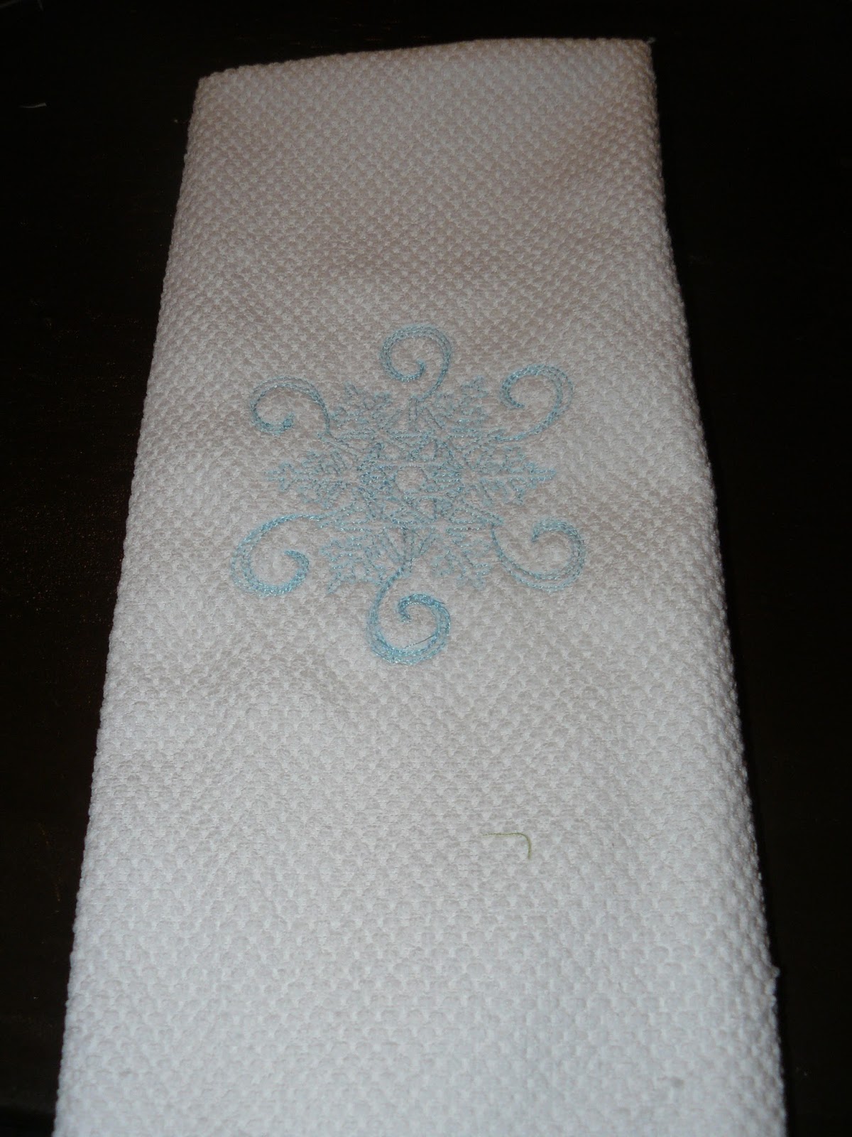 I picked up some nice but inexpensive towels from Walmart. They are sooooo soft. Then I embroidered one of each set with a snowflake and one of each set with a reindeer. I figure that covers Christmas and "winter". My mom is all about having just wintery Christmas decor so that she doesn't have to be in a rush to take it down.